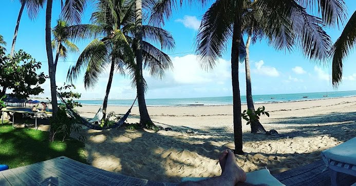 Tempo livre para banho de mar e descanso sob os coqueiros